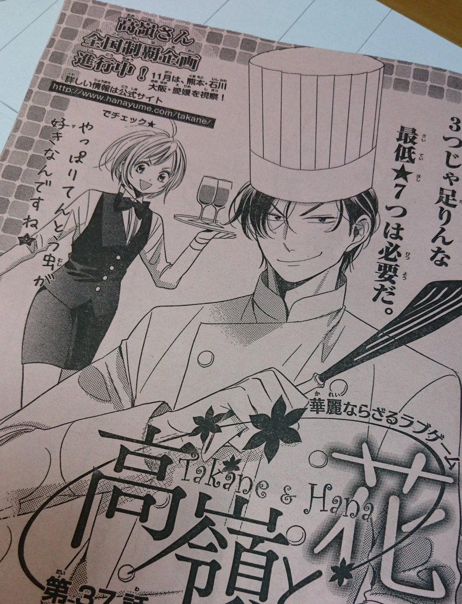 本日発売の花ゆめ22号に高嶺と花載ってます。久々にみんな(+花姉)でワイワイしてる話です。立看板は新ポーズ加わりました!群馬、高知、大分、福井です。スタンプ風画像もよろしくお願いします!hanayume.com/takane/index_s…