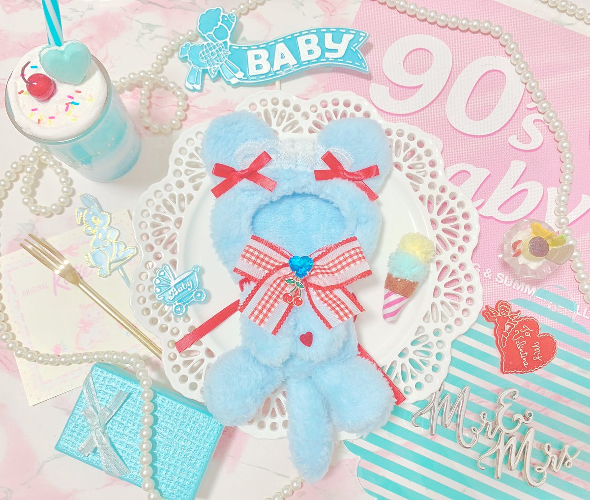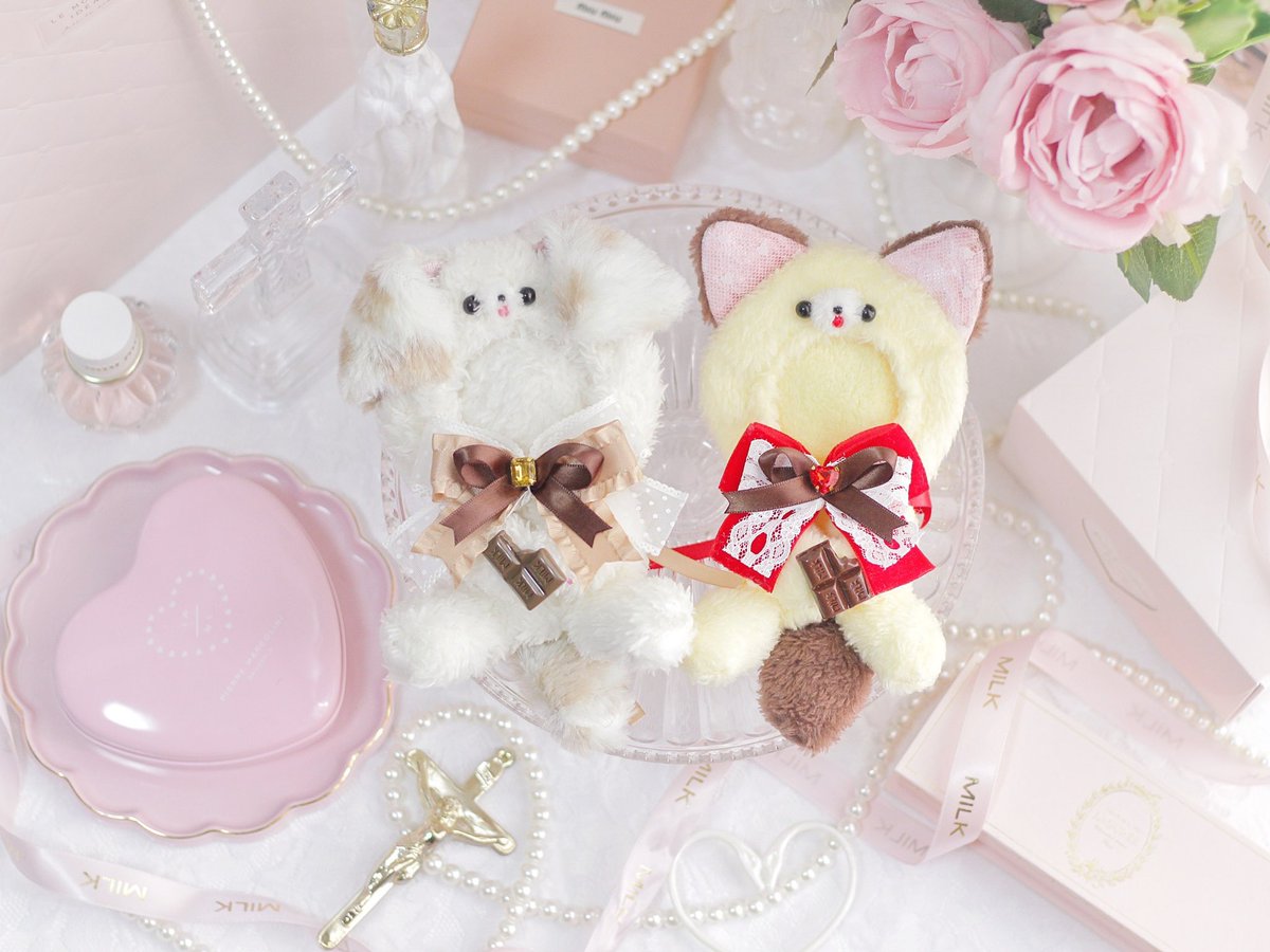 バレンタインに合わせたぬい服、着ぐるみ、トレカデコケースなどの小物を頒布します☁️☁️☁️