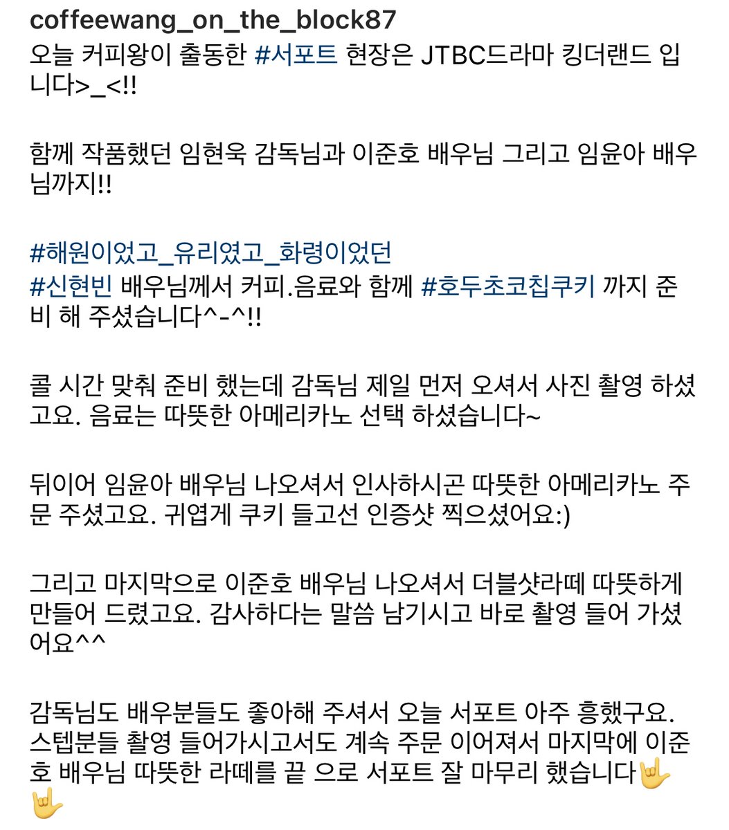 킹더랜드 촬영장에 신현빈 배우가 보낸 커피차 업체 후기에 윤아