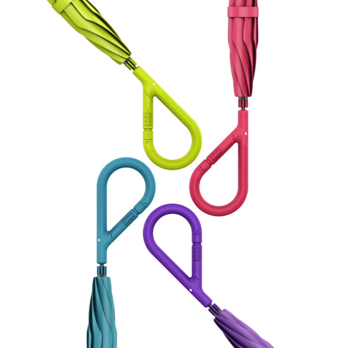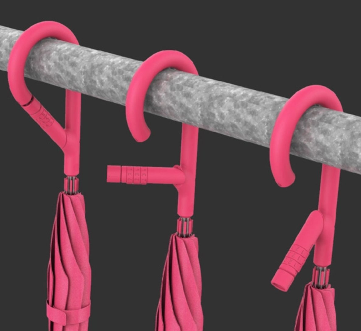 傘の持ち手にロック機能を付けることで、盗難防止をすることができるコンセプト☂️ 柄の一部がダイヤル式の鍵になっており、解除すると開く仕様で便利そう。is.gd/sI7n0q