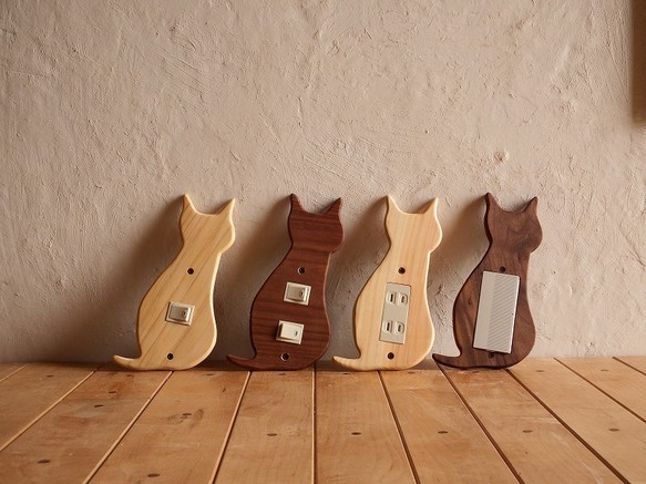 木の優しさ感じる「ねこのスイッチカバー」がかわいい…