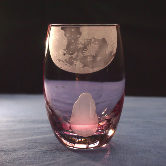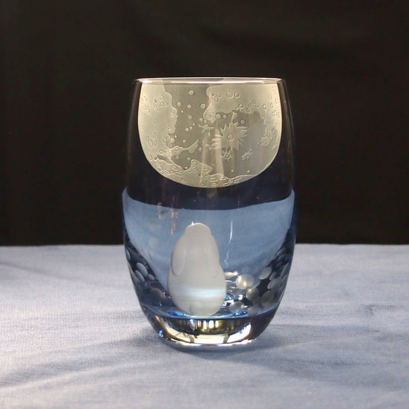 タンブラーにはお月見をしているウサギの後ろ姿と、反対側には大きな月がサンドブラスト彫刻されています。カラーはブルーとピンクの2種類です🌕🐇