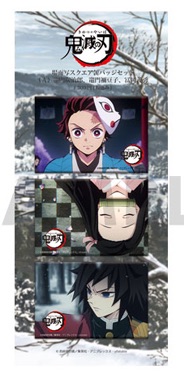 作中で炭治郎達が身につけているお面がアクリルバッジに。全5種です。