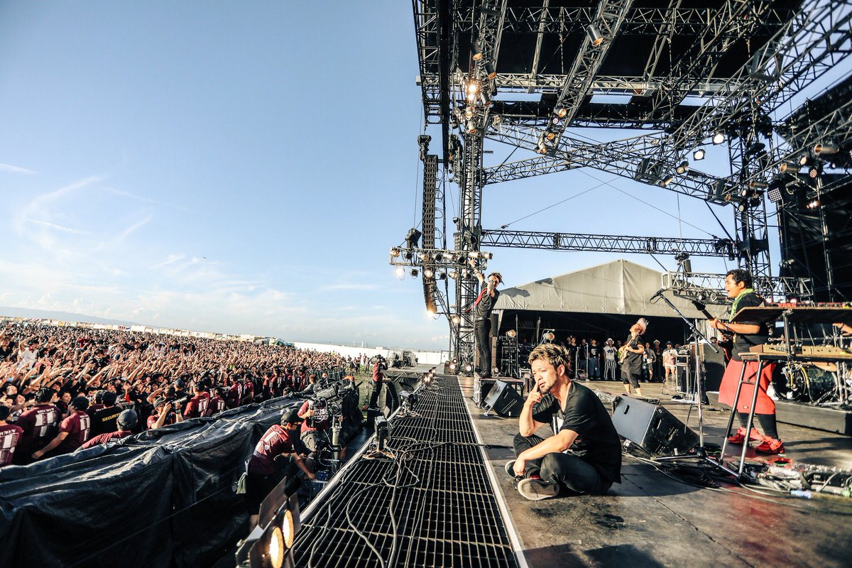 トライアングルー めっちゃ暑かったなぁー そしてみんなの笑顔が最高だったわーー 本当にありがとー そして dustboxの準備中のステージにお邪魔しましたー すみませんチェックしてるのに こんなことに付き合ってくれる先輩大好きだわー