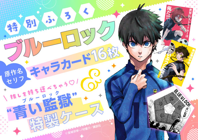 別フレ3月号には、「ブルーロック」キャラクターカード16枚と青い監獄特製ジップケース1つが付いてくる!