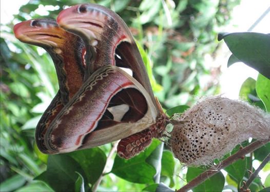 Attacus atlas is a large saturniid moth endemic to the forests of Asia. Its Cantonese name translates as "snake's head moth," referring to the prominent extension of the forewing which bears resemblance to the head of a snake [read more: buff.ly/2J9lJBl]