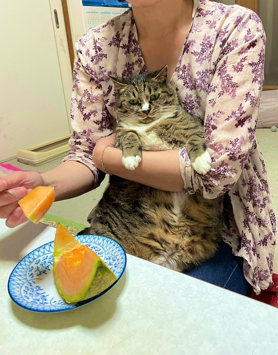 昨日は実家猫はなちゃんを抱っこしながらメロン食べました🍈