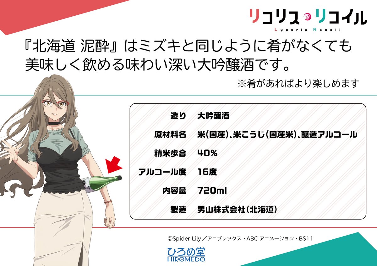 「リコリス・リコイル」に登場した日本酒『北海道 泥酔』🍶