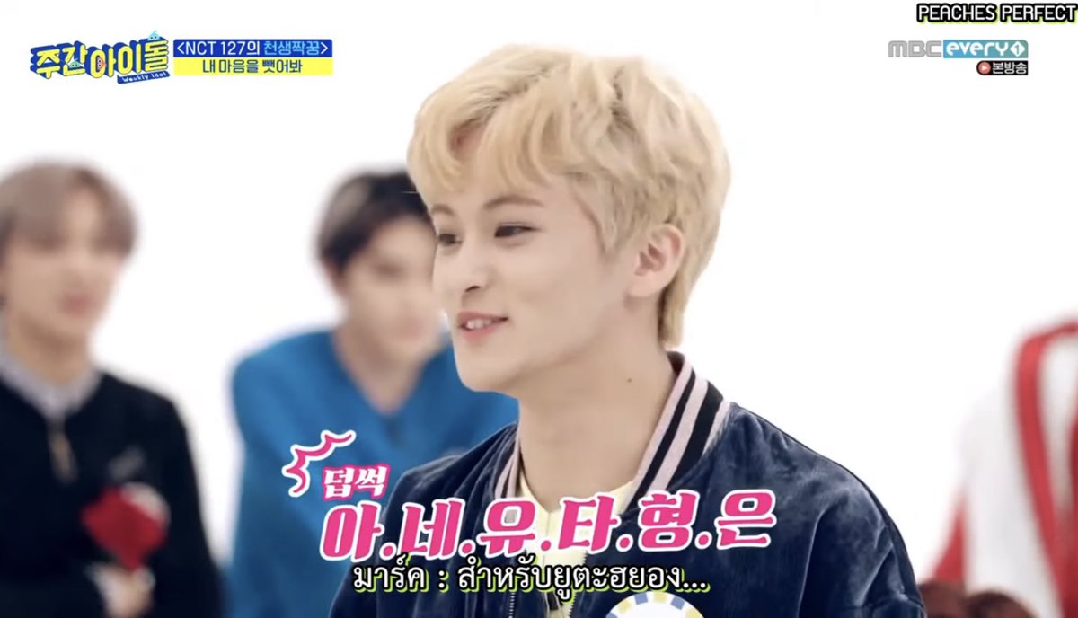 ขำอะ มาร์คพี่แทอิลแฮชานเห็นสโลแกนที่เขียนว่า "แทอิลอ่า เขียนชื่อฉันลงในทะเบียนบ้านนายหน่อย" (ก็คือหมายถึงอยากเป็นภรรยา😂😂😂) ละแฮชานก็ขำ พี่แทอิลยิ้ม ส่วนมาร์คบอก "มุนซอบัง~" เป็นคำเรียกผู้ชายที่แต่งงานแล้วอ้ะ 5555555