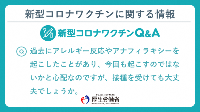 A. 食物アレルギーや、アレルギー体質などがあるといった理由だけで、接種を受けられないわけではありません。