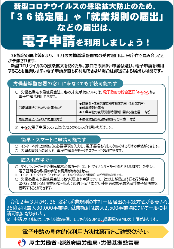 年度末~年度初めは、都道府県労働局、労働基準監督署、ハローワークの窓口が、来庁者の方で混雑する傾向にあります。そのため、感染拡大防止の観点からも、各種届け出・申請などをする際は、電子申請や郵送の積極的な活用をお願いします。#新型コロナウイルス
