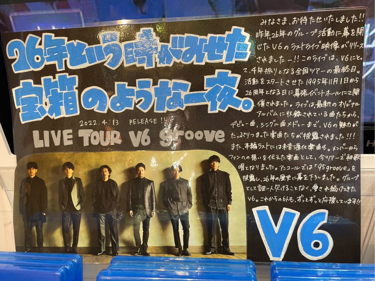 #V6 のラストツアー『LIVE TOUR V6 groove』がついに円盤化🎉ツアー最終日。そして26周年記念日の11月1日に開催された一生忘れられない宝物となった感動のステージが余すことなく収録✨沢山の人に愛されたV6の魅力がぎゅっと詰め込まれた永久保存版ともいえる1作となっています🎶