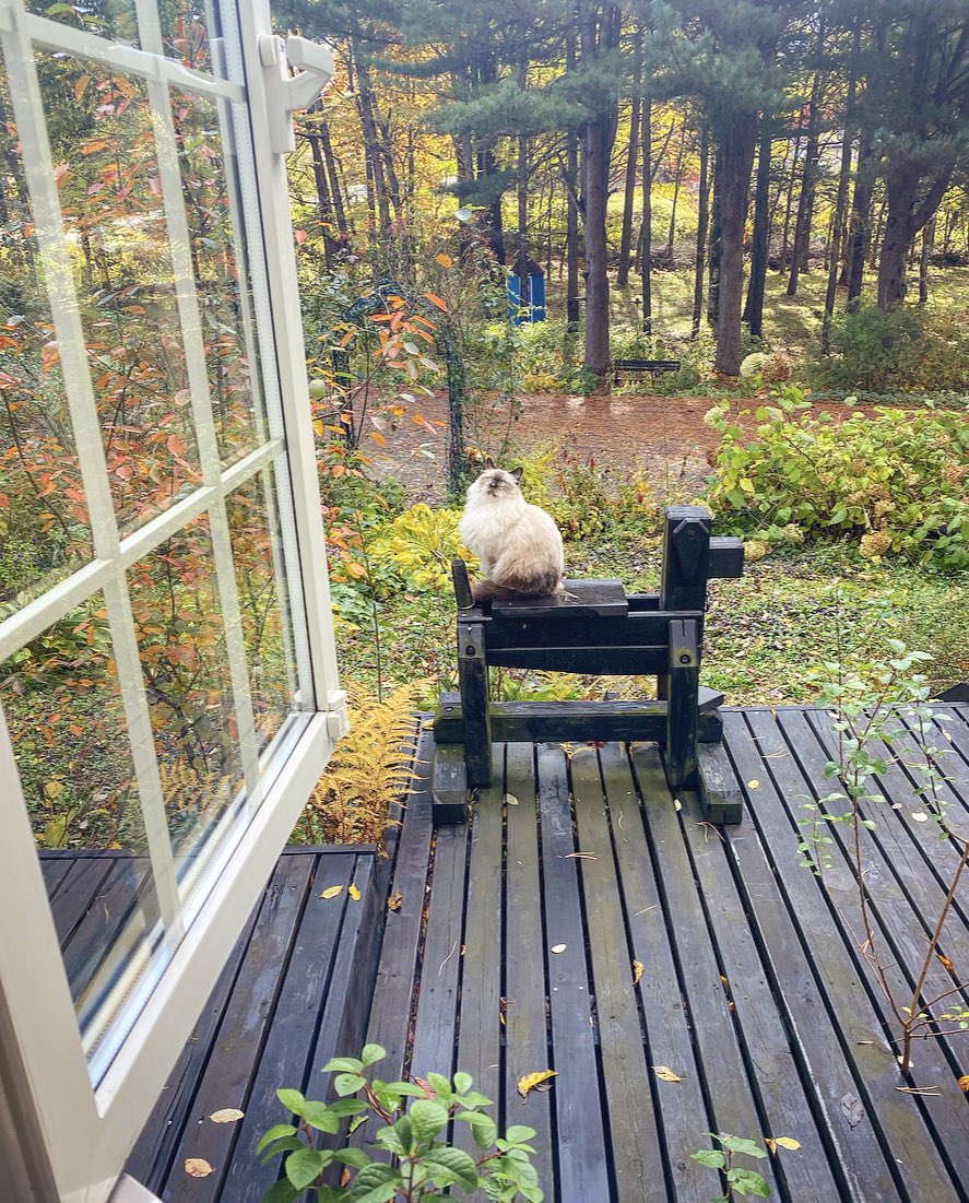 涼しい日。朝からしとしと雨とごろごろ雷。それでもお外にいたい2匹。 呼ぶとしぶしぶお家に入って来ます。