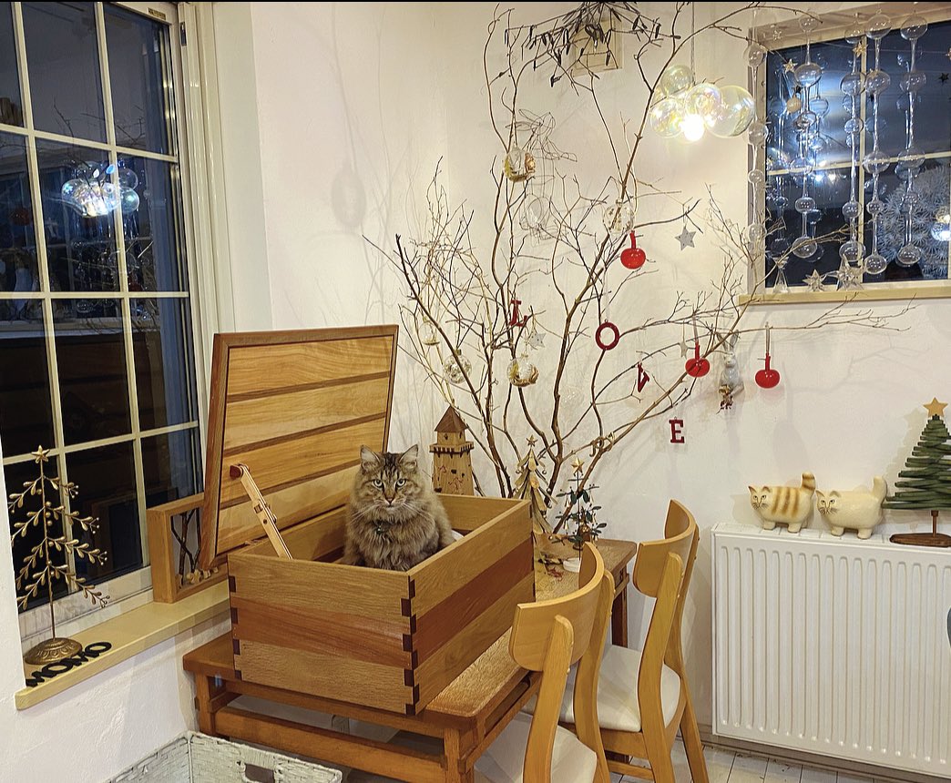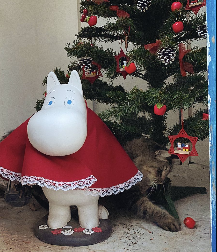 猫(ファーファ)のいたずらから逃れてお庭に設置されたツリーさん…🎄