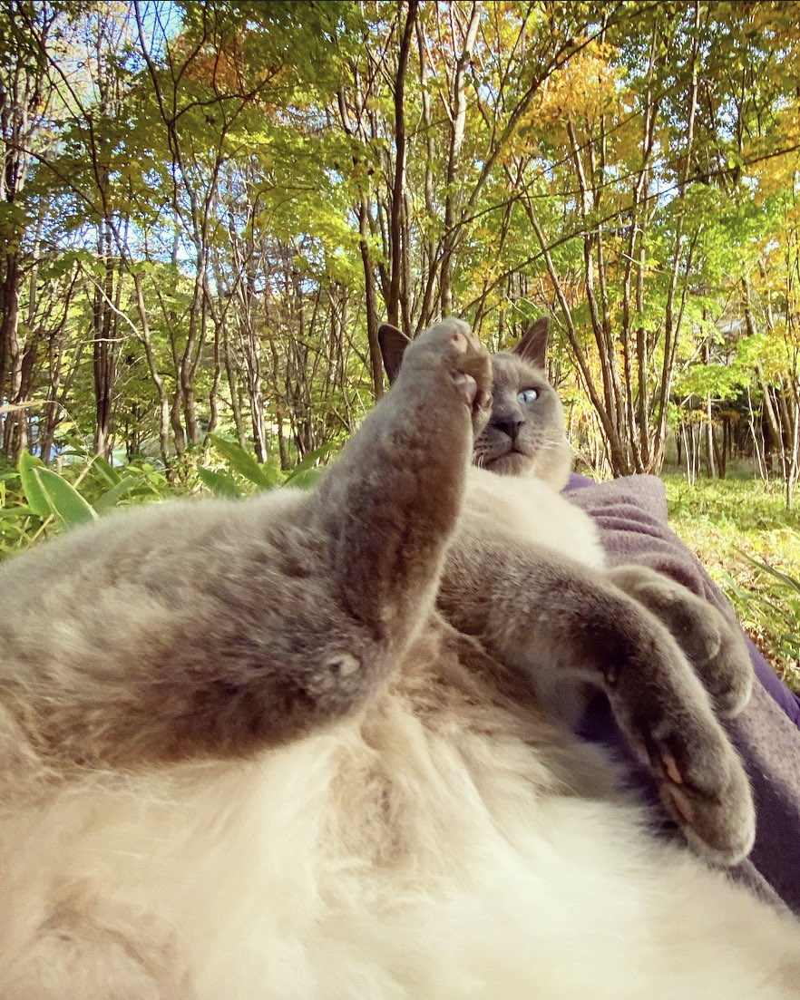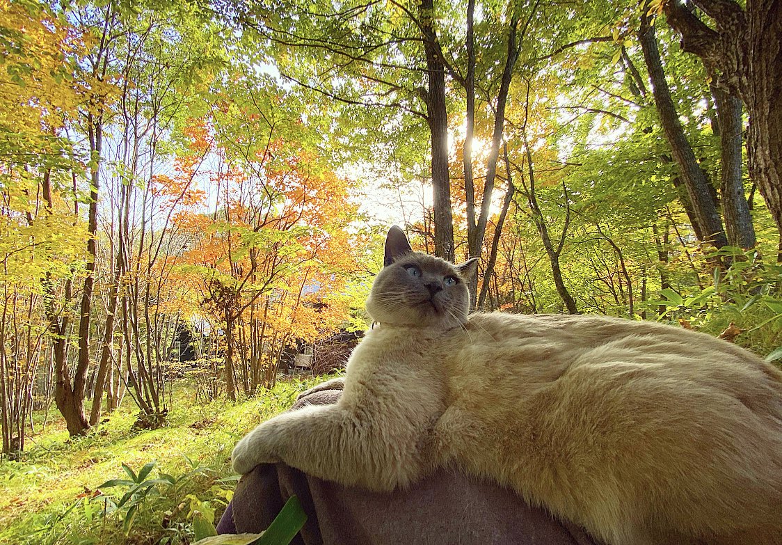 一年で最も明るい季節。膝の上でごきげん。