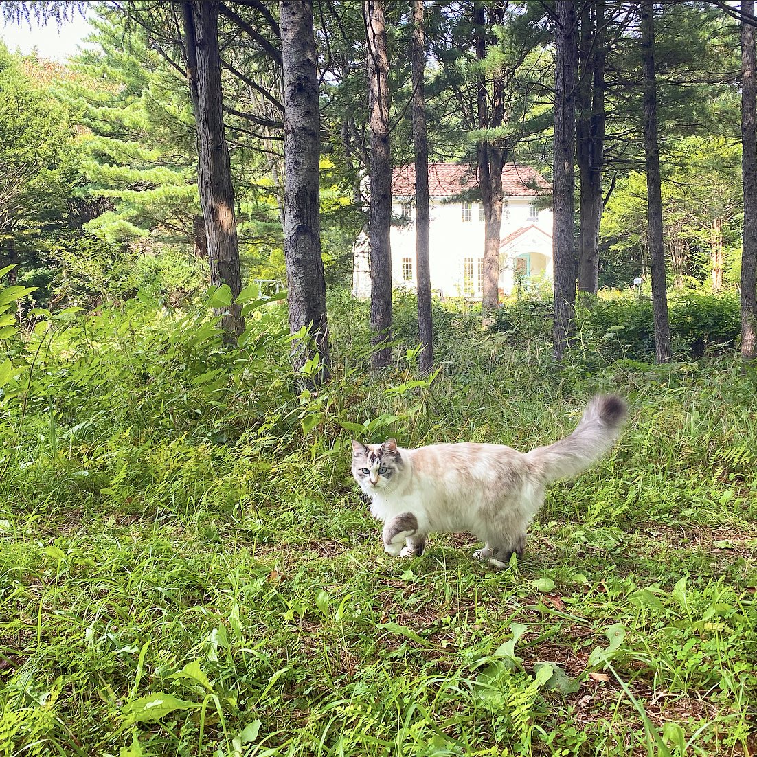 夏の間姿を消していた鳥達も戻って来て、賑やかなお庭。鳥達の大合唱に戸惑うモフモフ、おさんぽコースを変更。