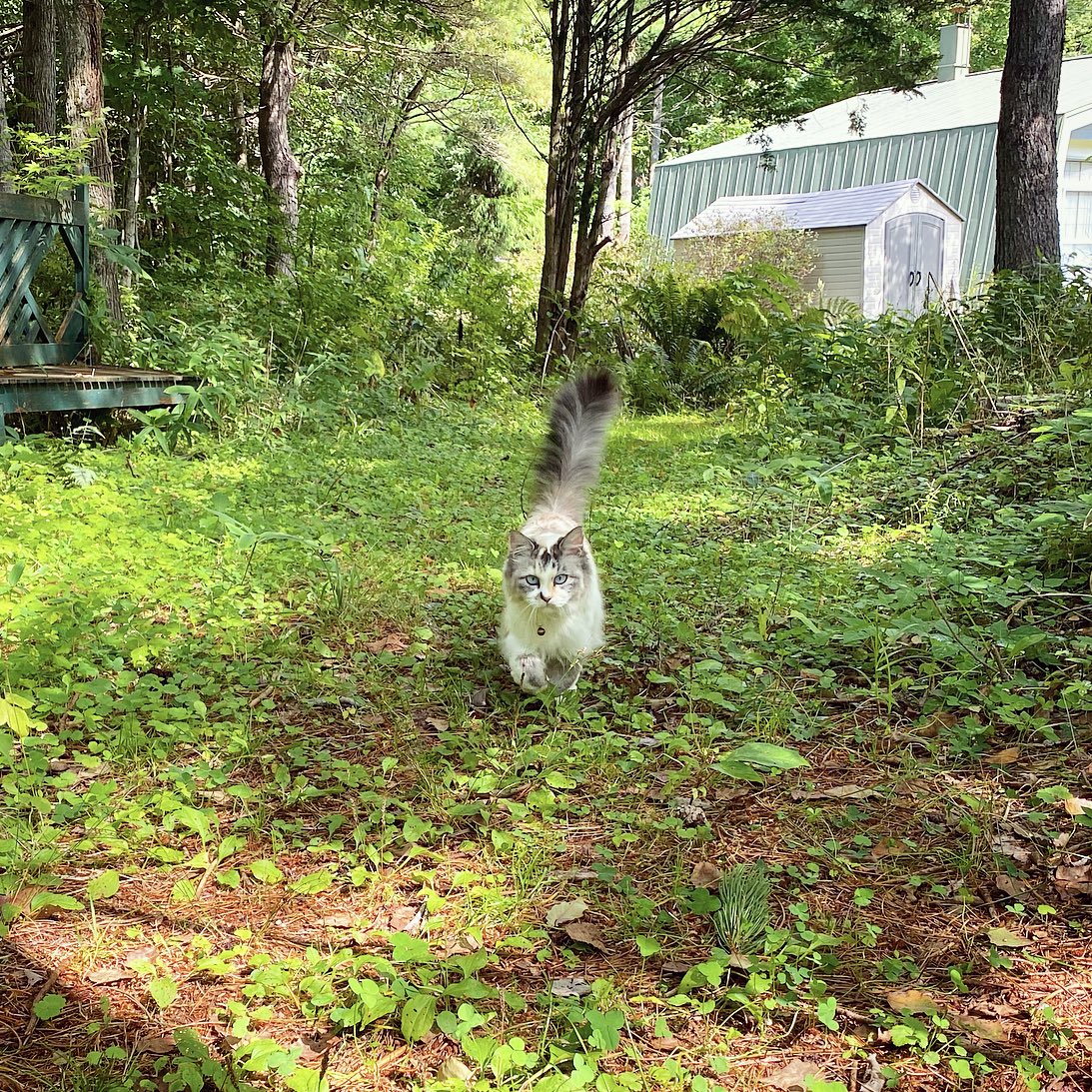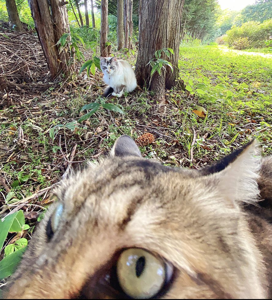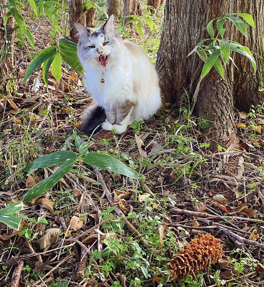 家の前に大好物の松ぼっくりの木が4本あって、常に数匹のリスさん達が夢中でお食事中。飼い主も猫たちもお庭に出ただけで怒られる毎日です。。