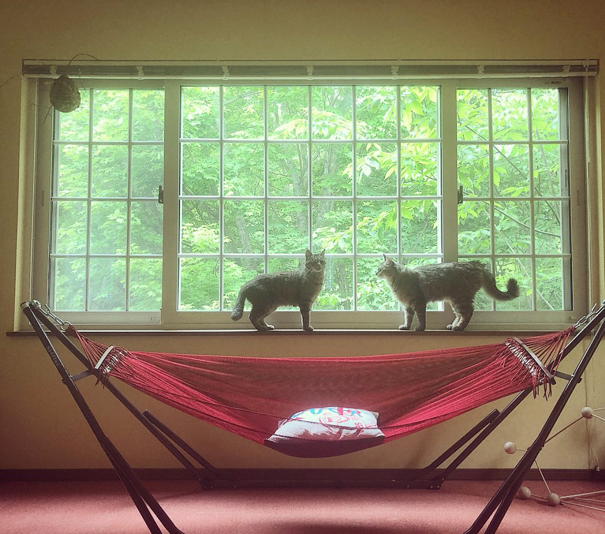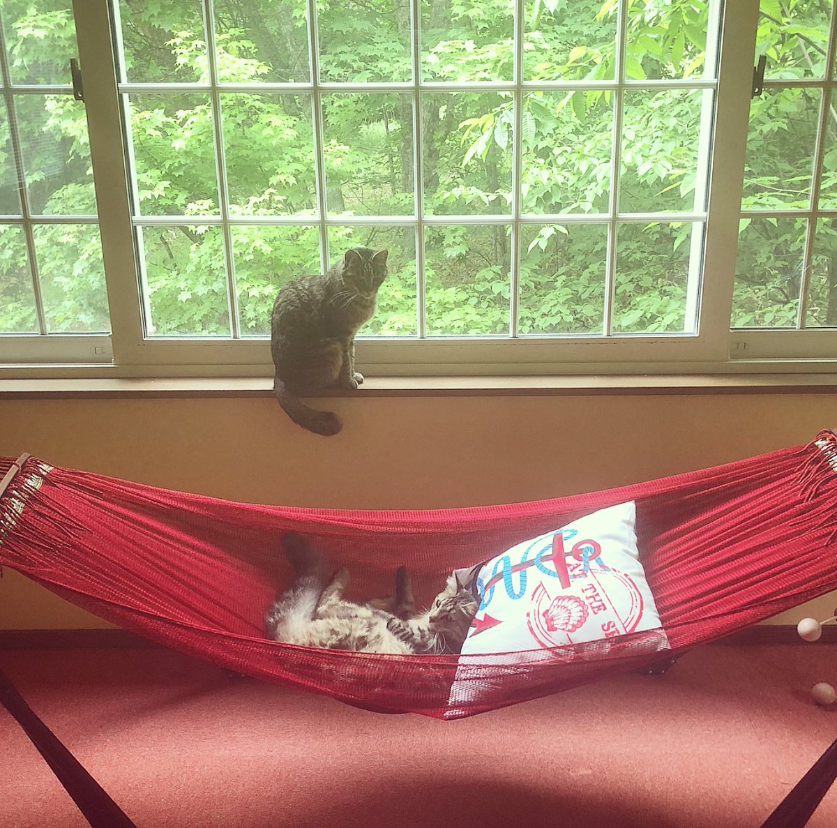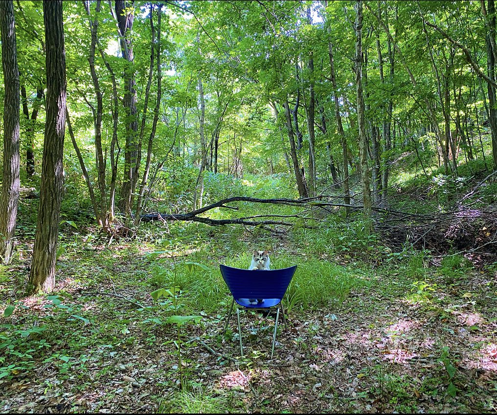 好きな場所でお昼寝。前も後ろも上も下も緑に囲まれて、ごきげんモフモフ。