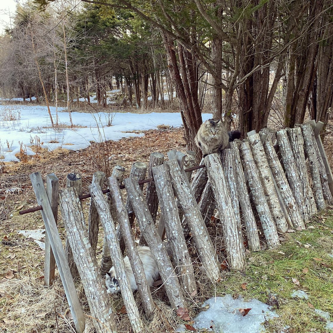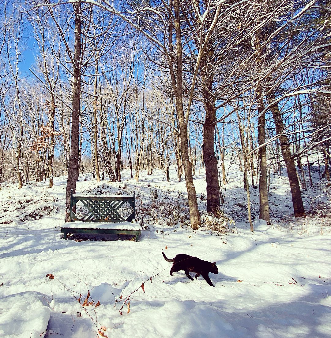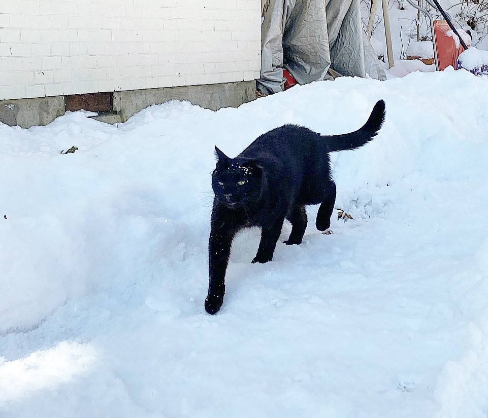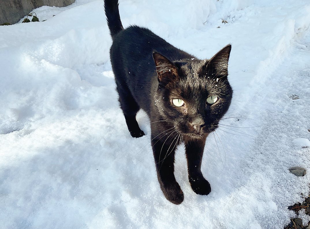 晴れ間にひらりひらりと小雪が舞う中、お庭のパトロールに出掛けます。 (*`ΦﻌΦ´)(๑`•ω•´)