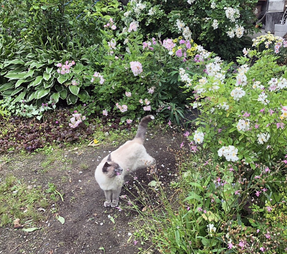 せっかく美しい薔薇の季節を迎えたのにじめじめ、暗い雨の日の連続です。雨が止んだ隙にお外の空気を吸いに。