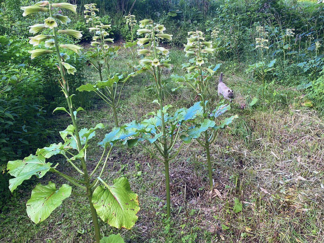 わさわさお庭。オオウバユリも満開。