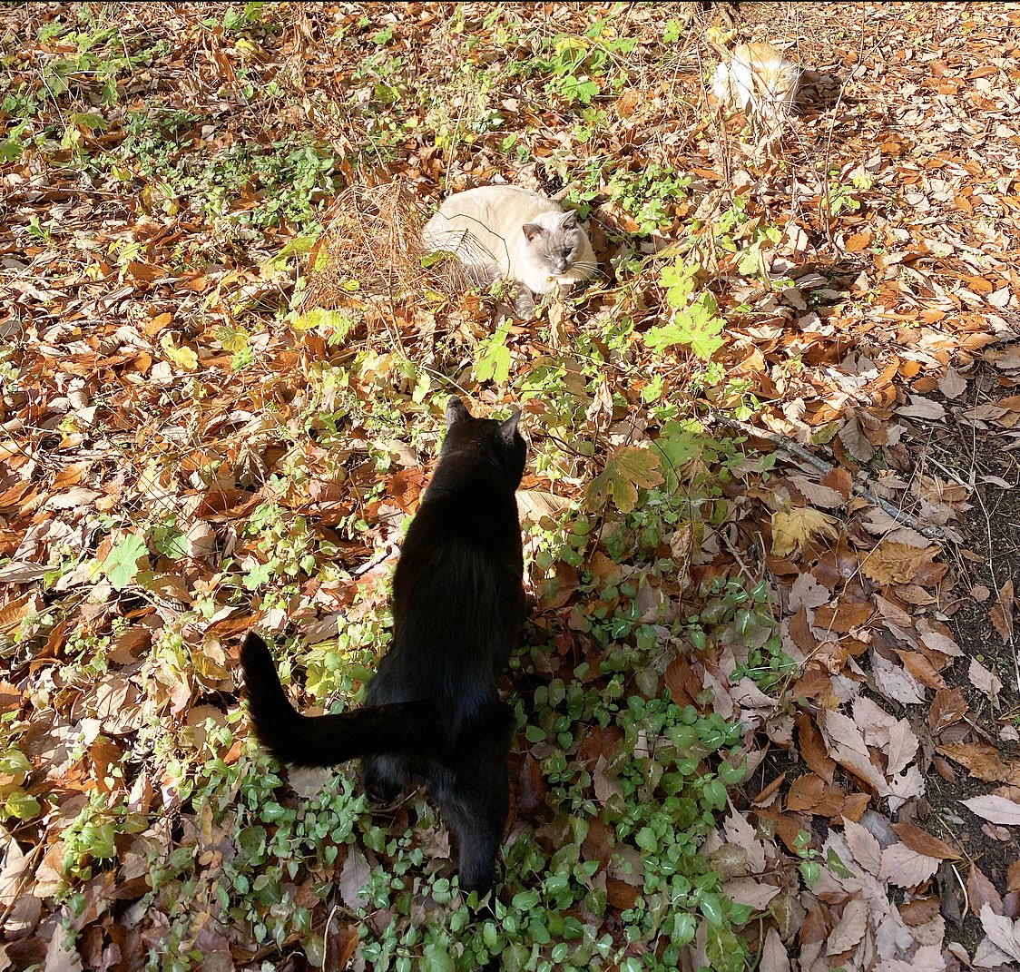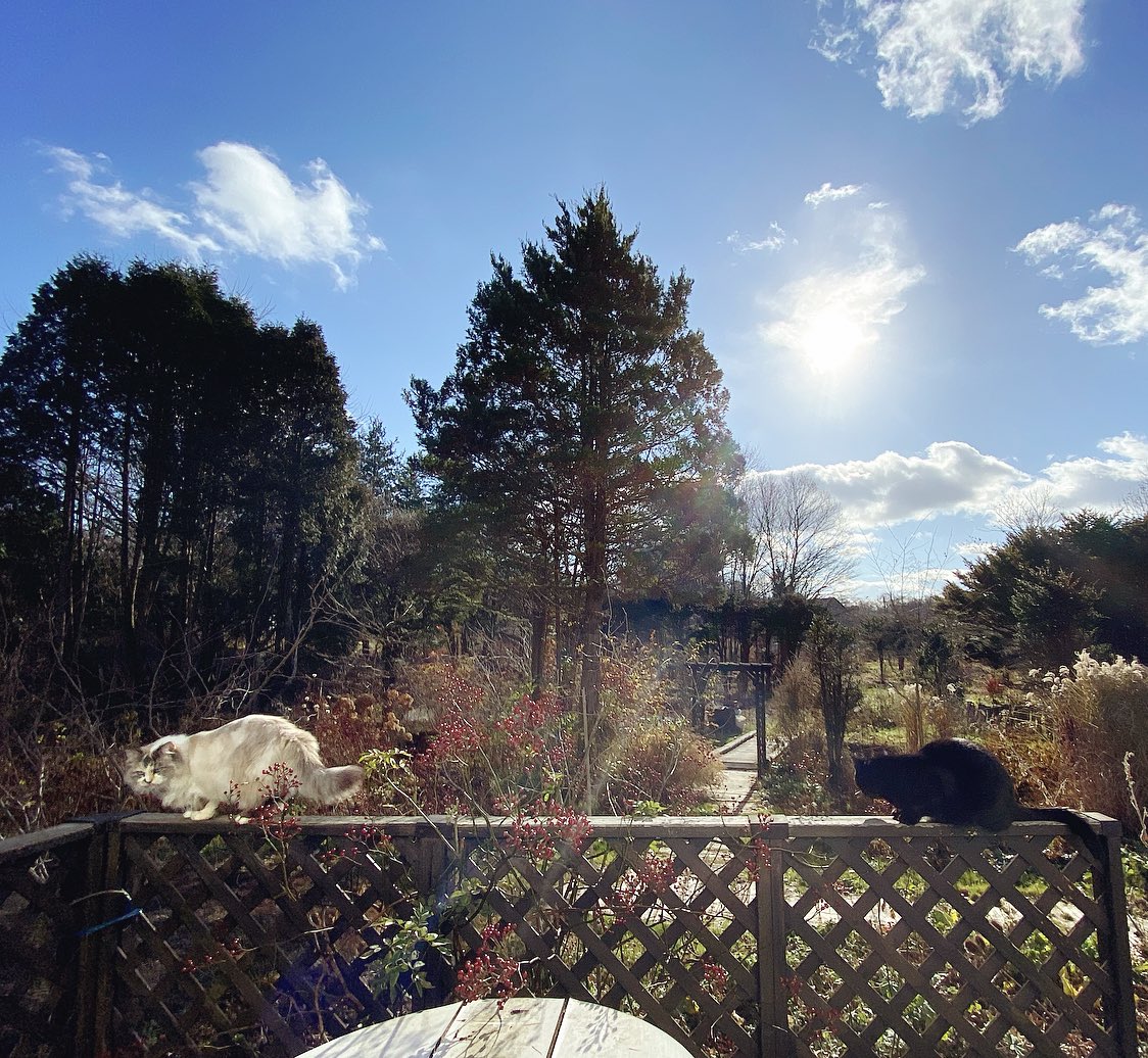 寒くなった途端、ほとんど外に出なくなった黒猫。ぴかぴかお天気に誘われて、久しぶりにみんなと一緒におさんぽ&日向ぼっこ。