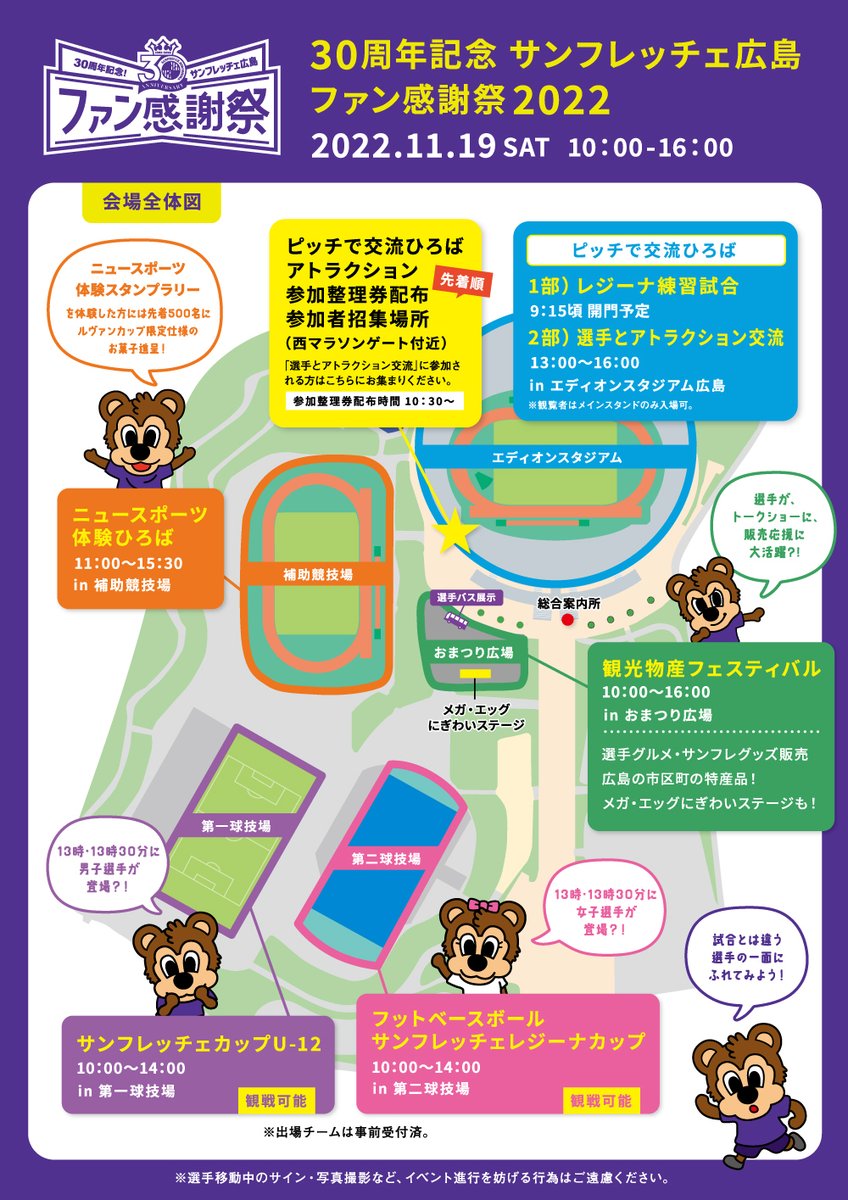 選手トークショーをはじめ、SPL∞ASH、メガ・エッグ様から豪華景品がもらえる大じゃんけん大会、広島県内観光PRタイムなど、盛り沢山です😍💜🏹