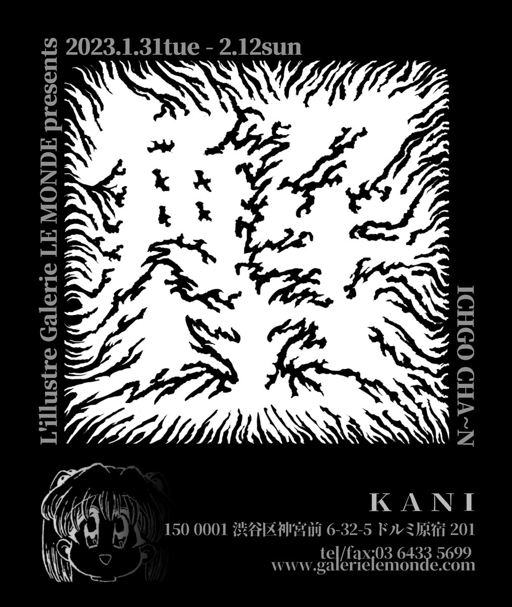 🦀お知らせ🦀 ICHGO CHA~N 初個展『蟹』 場所 原宿 ギャラリールモンド様 会期 1/31(火)〜2/12(日) 展示する作品は全て、公開していない蟹を題材にした新作になります。 ルモンド様のご厚意により、作品を150点程掲載した初の作品集を販売致します。 是非お越しください🦀