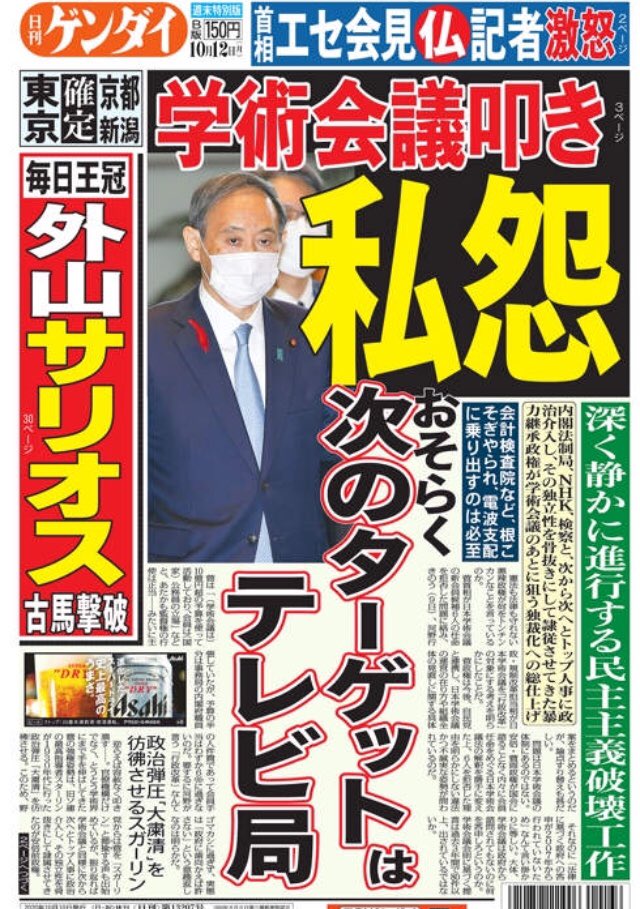菅首相や加藤官房長官が暗に攻撃すべき対象を発信し、一方で安倍政権を擁護してきた御用コメンテーターたちが必死で論点ずらし…💢 lite-ra.com/2020/10/post-5…