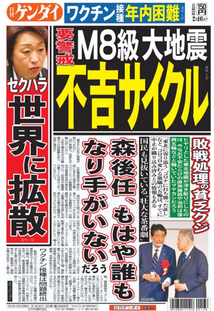 「女性蔑視の考えはないと言い切って去った女性蔑視の森喜朗氏。密室で勝手に後継者になる事を受諾した川淵氏。それを決まったかのように報じたマスコミの多く。今の日本という国の縮図そのもの。希望は声を上げた世論。その世論調査では8割の国民が五輪7月開催に懐疑的です」