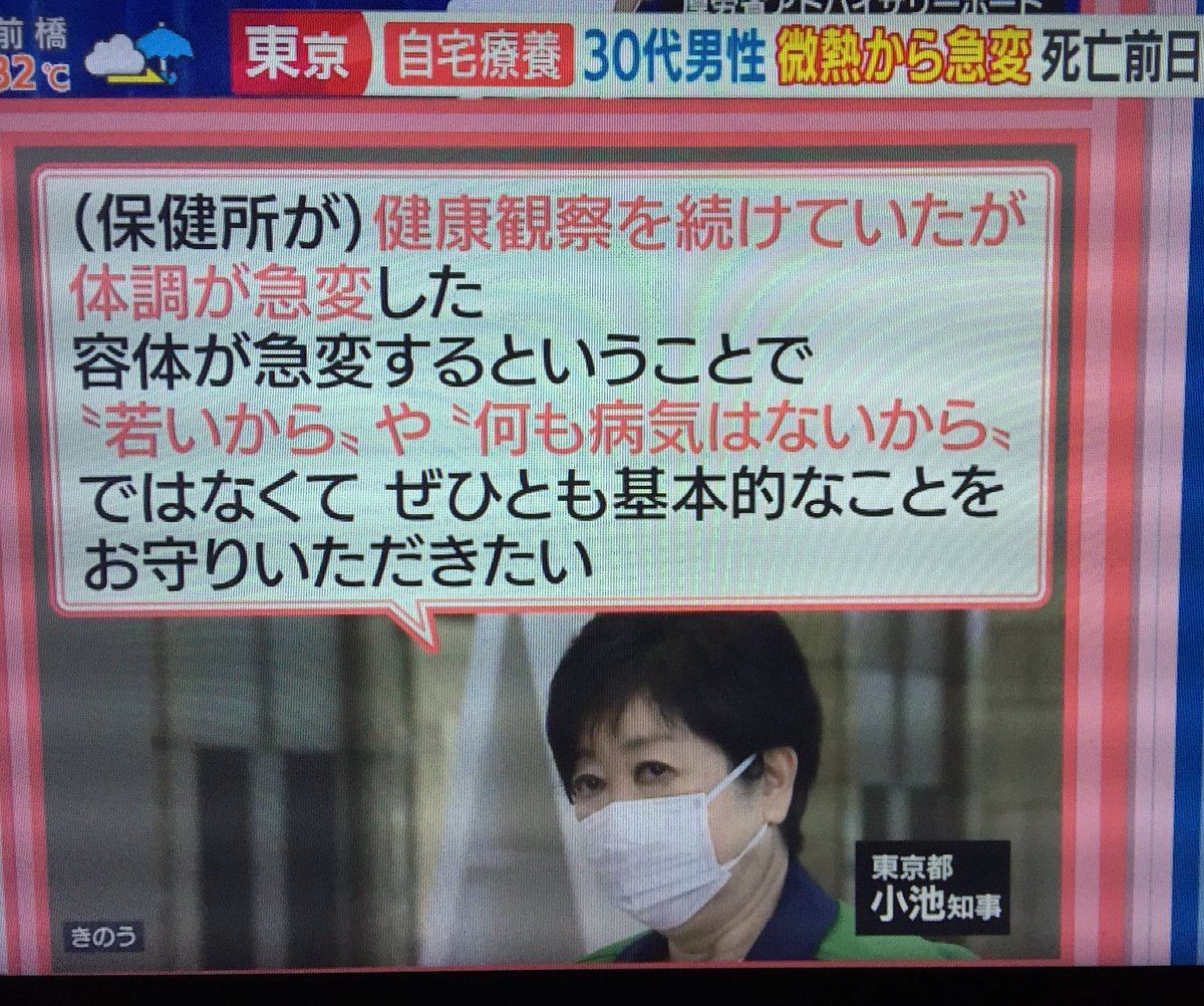 小池都知事「30代の方がご自宅で体調が急変したと」「『若いから』『何の病気もないから』ではなくて、ぜひ基本的なことを守って」