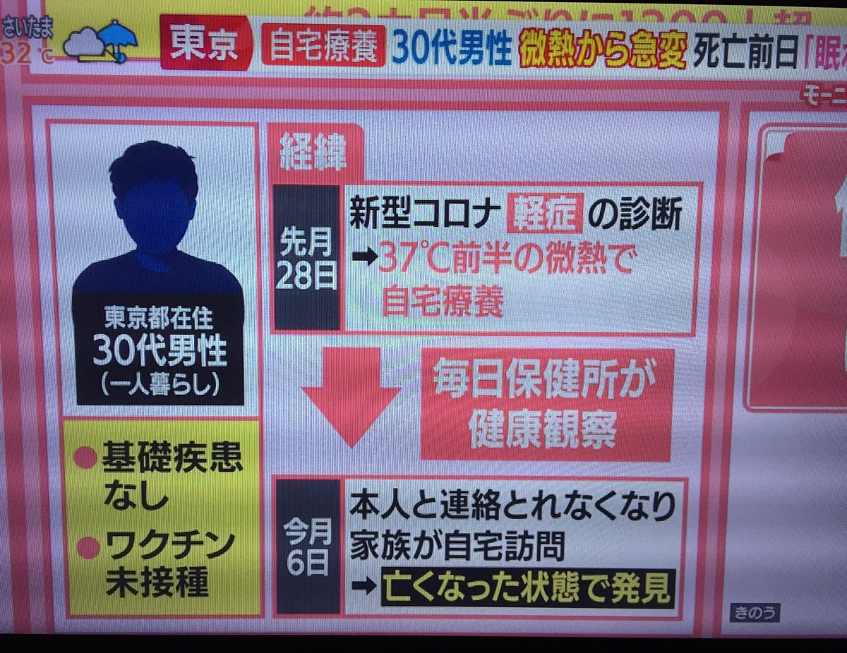 “自宅療養中、30代男性死亡”