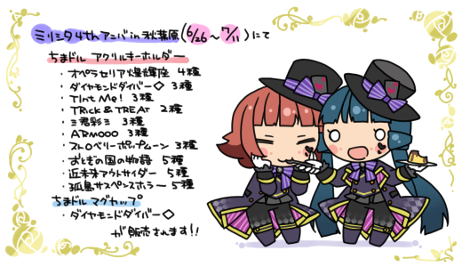 ミリシタ4周年in秋葉原(6/26~7/11)にて、ちまドルアクリルキーホルダー各種、ダイヤモンドダイバー◇マグカップ等様々なグッズの販売やら展示やらあれこれ色々ありますーよろしくお願いします! gift-gift.jp/event/special/…