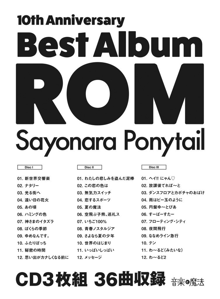 どーん!!さよポニ結成10周年を記念した初のベストアルバム『ROM』が発売されるよ!㊗️新曲2曲をふくむ豪華3枚組💿💿💿36曲⚡️ジャケットは中森煙さん(@kemurismoke)初回出荷分にはボーカル5人それぞれのイラストがデザインされたオリジナルエコバッグが付いてきます(5種・ランダム)11月13日発売🎯