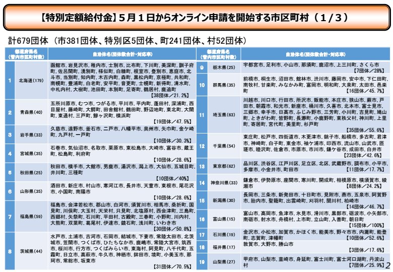 オンラインで給付金(一人10万円)の申請受付を開始した自治体一覧 ogino.link/2020/05/8926/