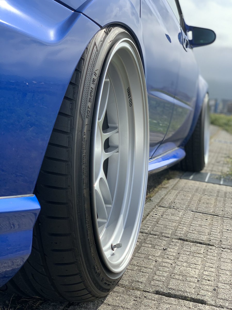 皆さんお待ちかね?の全体像載せます! 写真微妙ですが許してください🙇🏻♂️ New wheel😎✨ RPF1RS 10.5J±0 HANKOOK 255/35R18 キャンバー前後通し 7°です! 想定よりキャンバーついてしまったのは悔しいですが、自分のできる限りを詰め込みました🥹