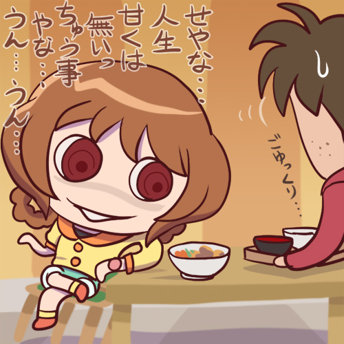 肉じゃがと話し込む代表