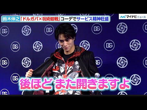 鈴木伸之、サービス精神旺盛!記者に自らポーズ ドルガバ×呪術廻戦コーデで登場