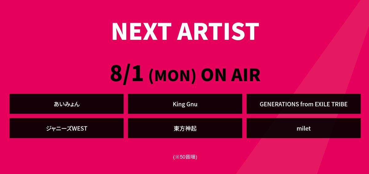 片寄涼太の新型コロナウイルス感染を受け、8/1(月)CDTV ライブ!ライブ!、8/5(金)MUSIC STATIONは6人で出演させていただくこととなりました。