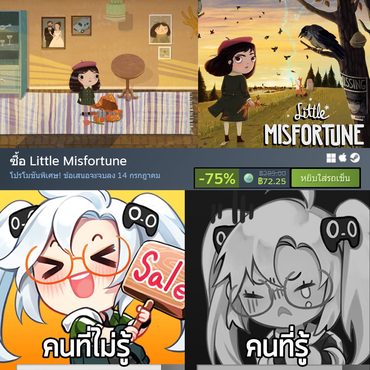 ลด 75% เท่าครั้งก่อนๆ ส่วนตัวเกมก็เกมอินดี้แนวชี้และคลิกที่เล่าเรื่องราวการผจญภัยของเด็กสาวผู้อับโชค… twitter.com/i/web/status/1…