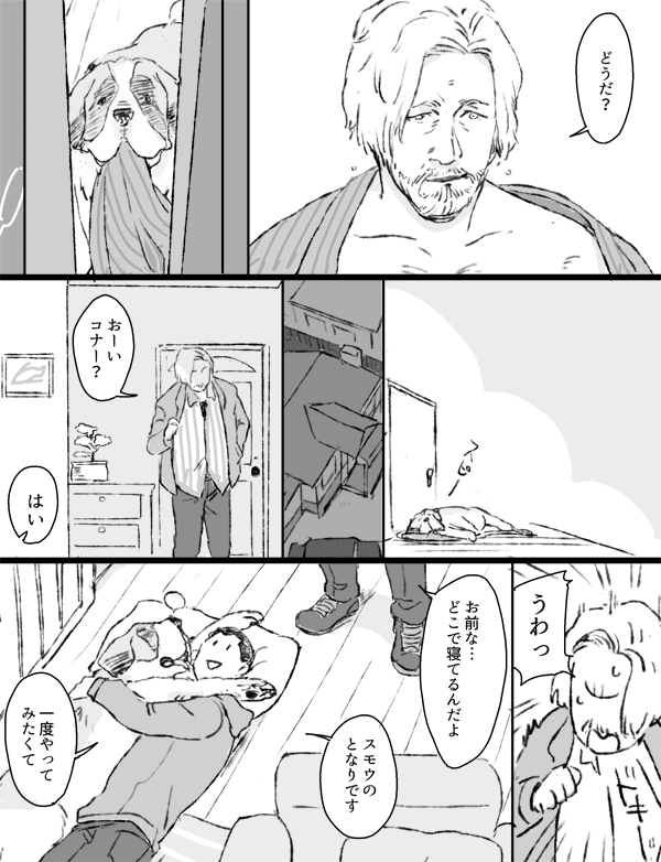 コナハン? 自分のデスクに写真を貼るコナ君