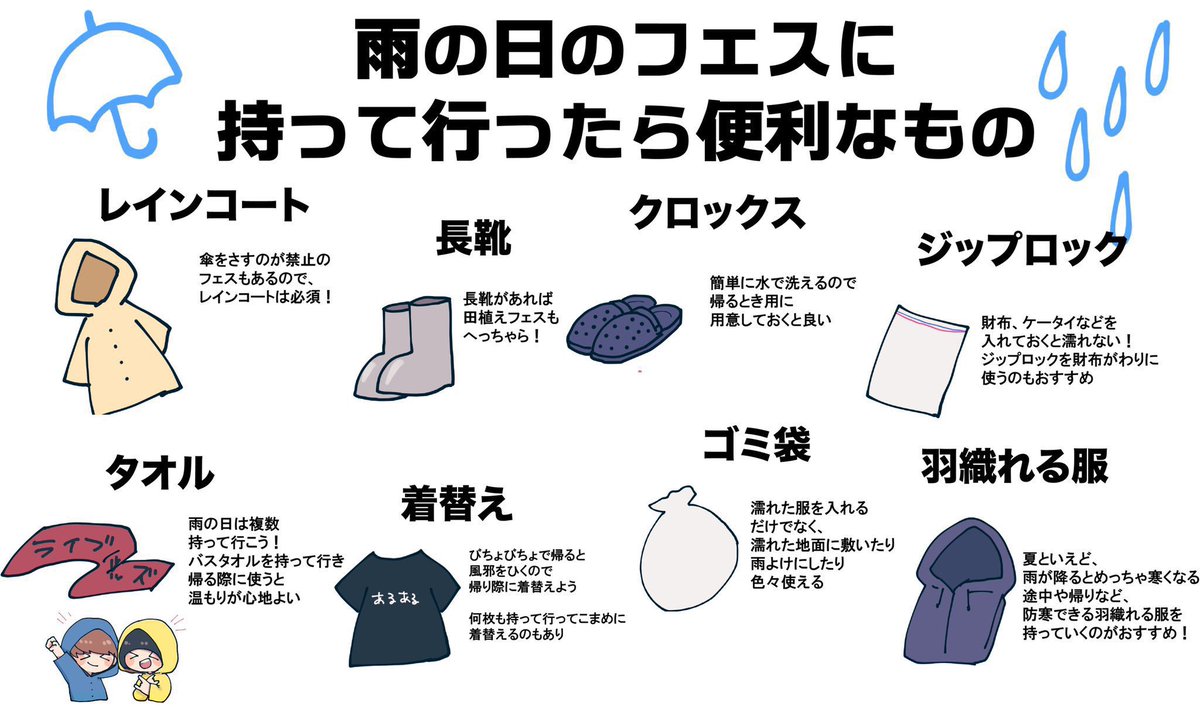 雨の日のフェスに持って行ったら便利なもの +感染症対策グッズも忘れずに!