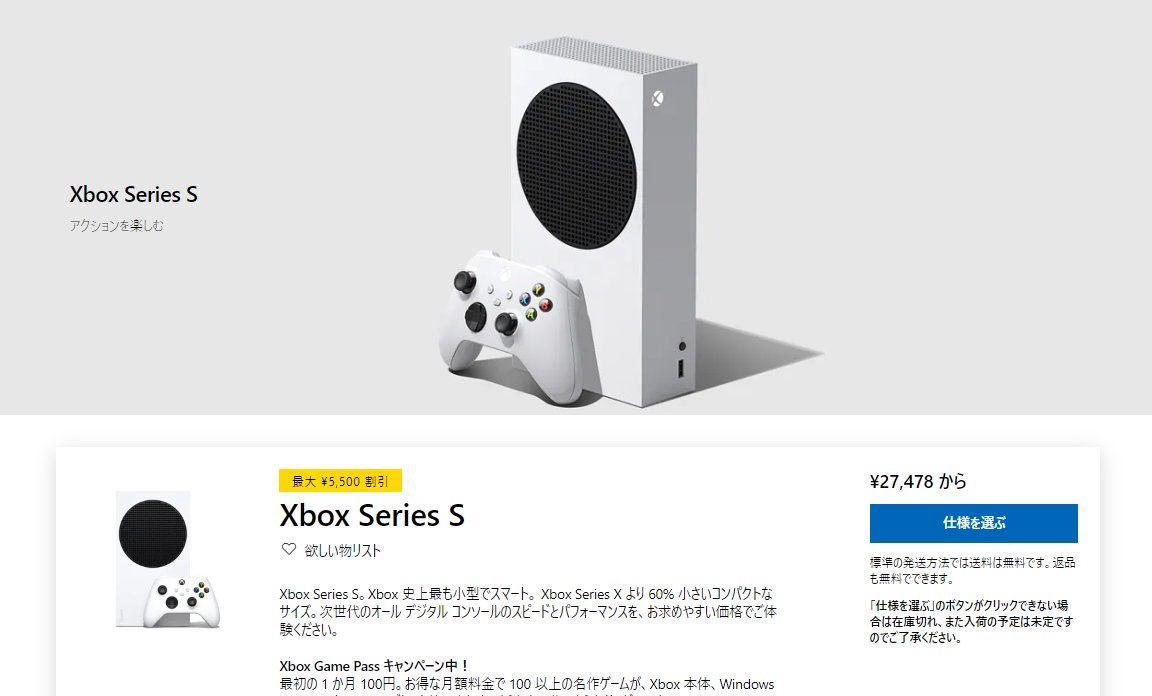 「Xbox Series S」マイクロソフトストアにて5500円引きでセール開始。ギルデッドハンター同梱版も予約スタート。