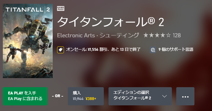 トレンドに「タイタンフォール 2」が登場。カウントダウンセールではゲーム本編388円、アルティメット版が604円でセール中。