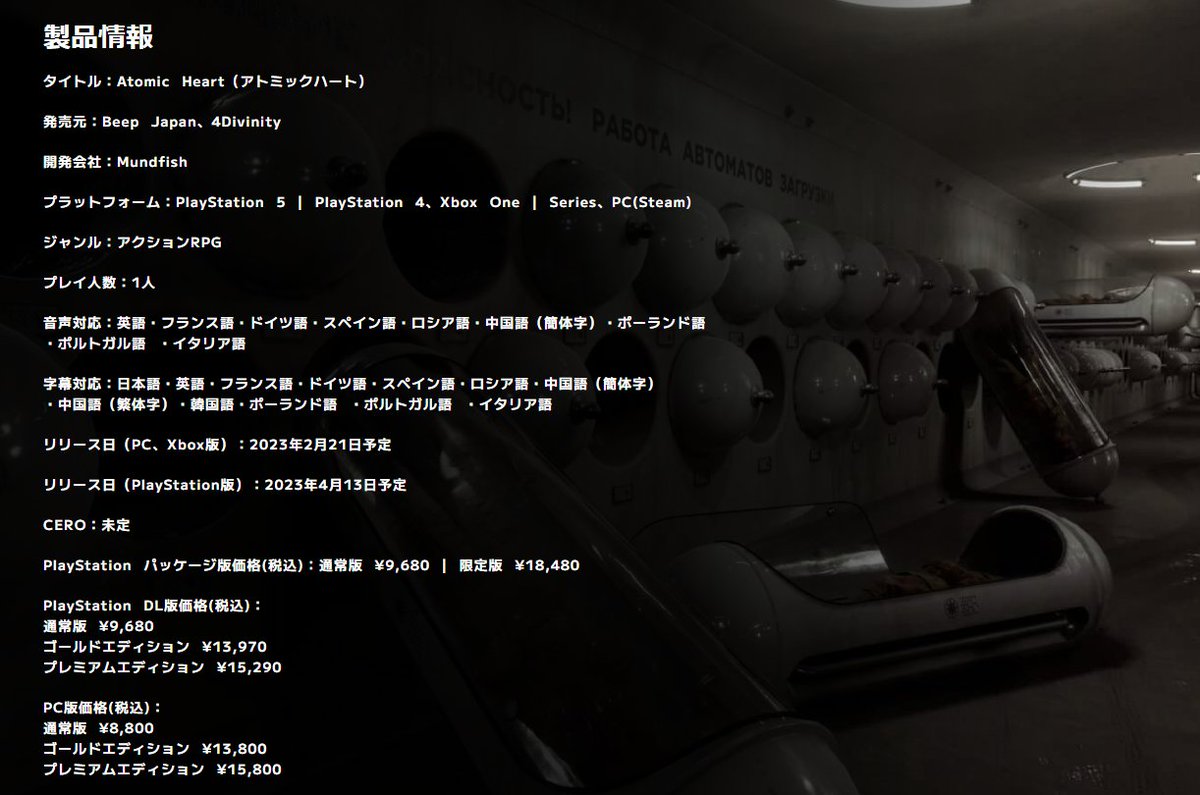 「Atomic Heart」国内パブリッシャーがBeepに決定。PC&Xboxは2/21、PS4/5は4/13発売予定。