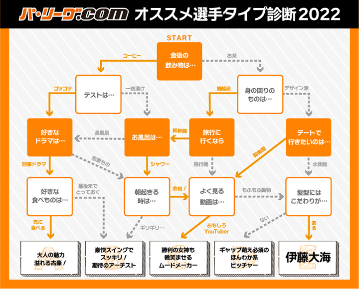 ついに始まった2022年のプロ野球。アナタにオススメのパ・リーグの選手を診断してみませんか? 直感で答えてみてください(診断結果はリプライへ)