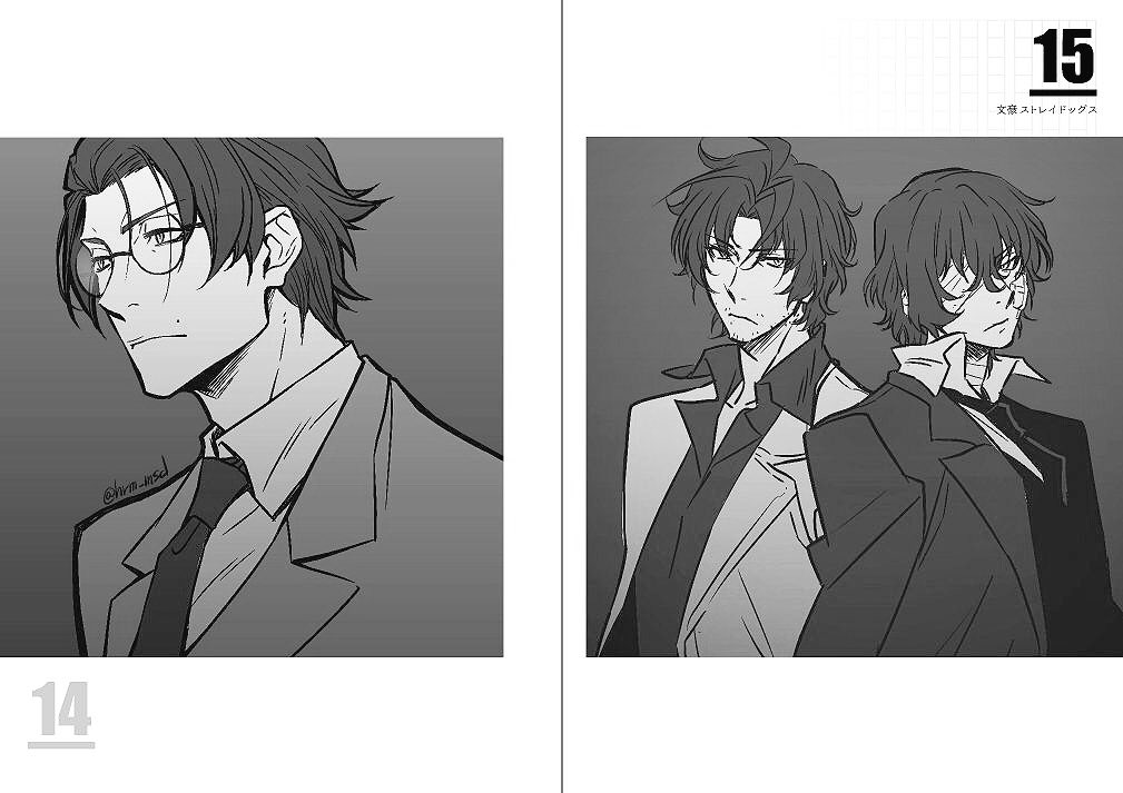 文ストから織田作、芥川、中原。いつもよりアゴと身体を細めに描くように意識してる。