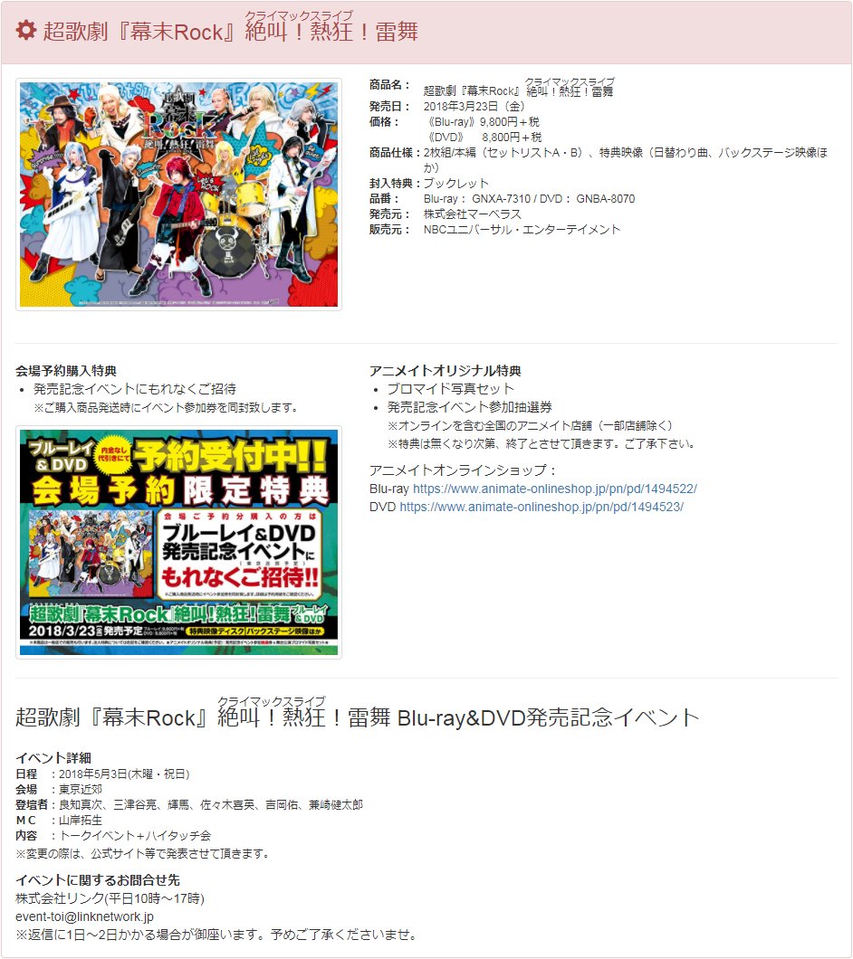 超歌劇『幕末Rock』絶叫!熱狂!雷舞BD&DVD発売記念イベント