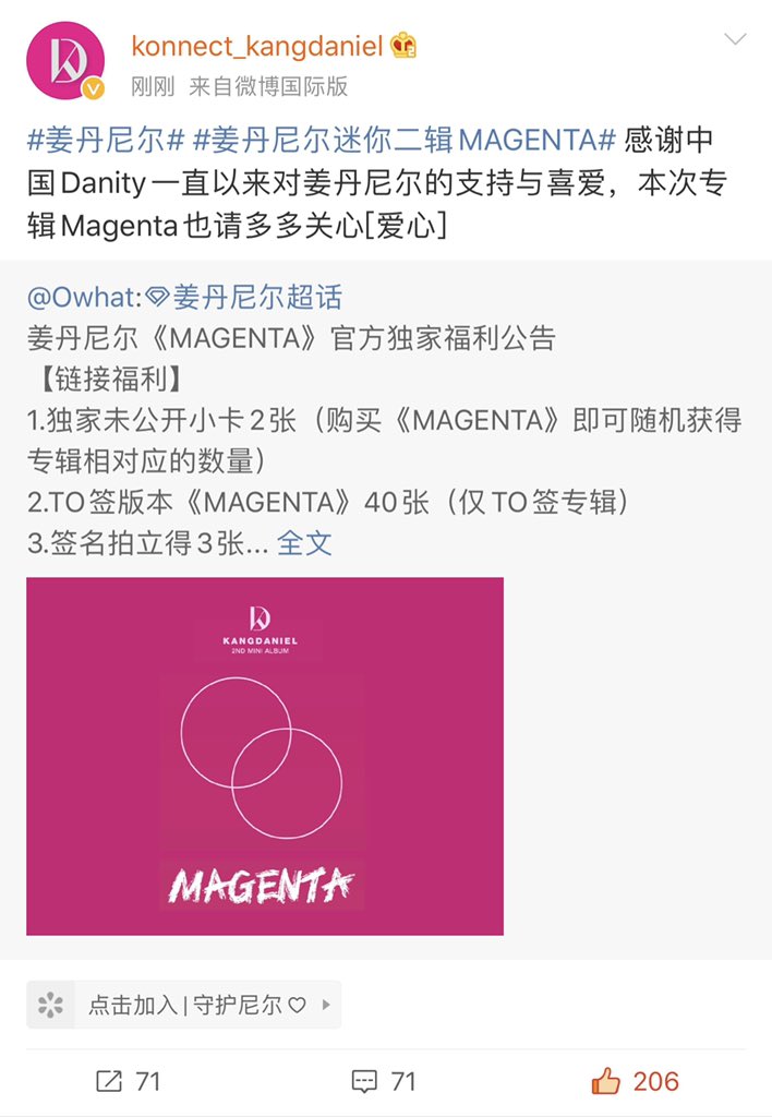 2시간안에 우리가 총 앨범1만2천장 공구완성햇어요.웨이보공구 지금 총 9만장 🎉 차룽이들 어제 웨이보에서 얘기한듯이 코룽이들 펩시도 선물해준 거에 대한 감사함을 위해 딴니컴백 좀더 노력하자구 헉헉 전세계니티 다 소중해💗 마젠타 화이팅