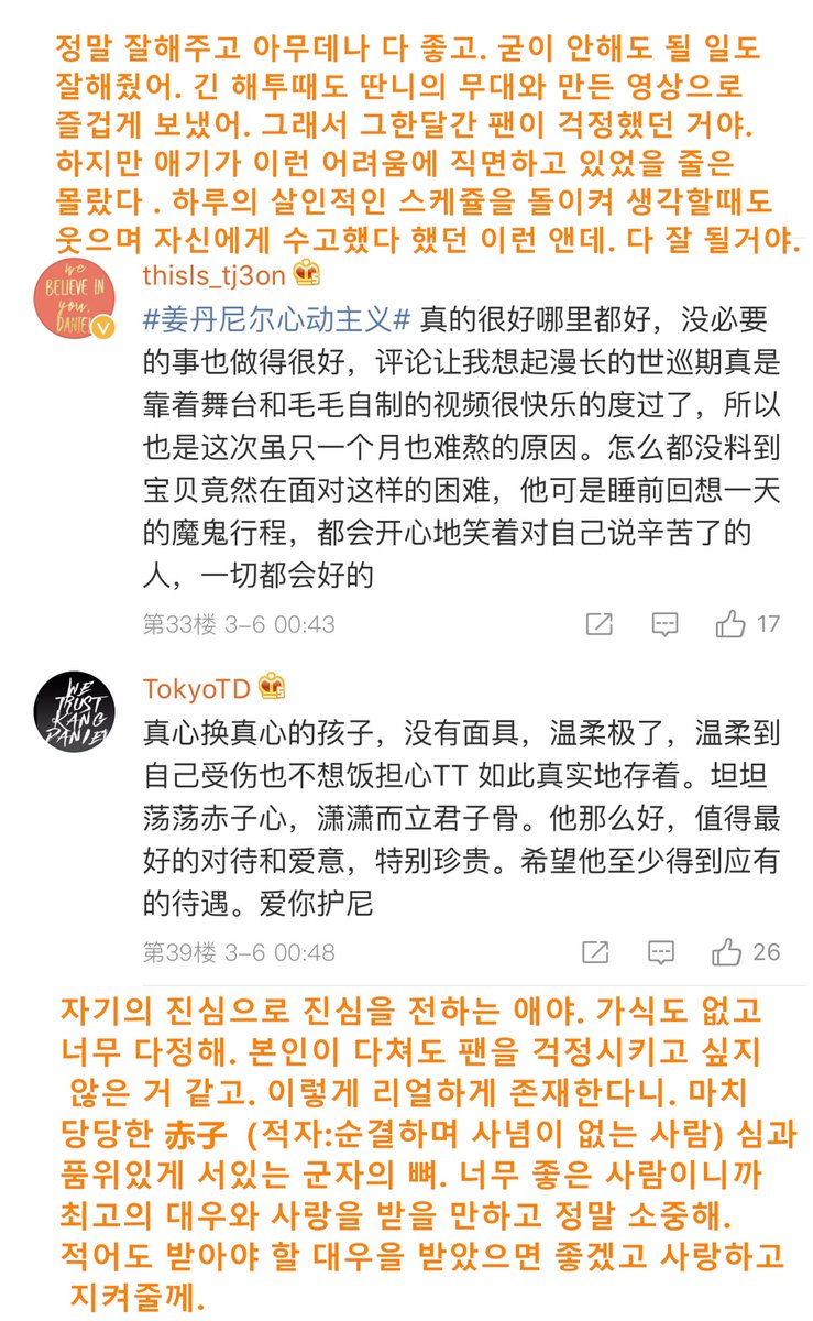 딴니앨범 중국상하이방송국 출연햇따 ㅋㅋ직장버라이어티 프로고 후하이취안이라는 중국가수가 회사직원꺼 언박싱하는데 딴니앨범이었어ㅋㅋㅋ후하이취안이 딴니 이름이 강니엘이 아니냐구 ㅋㅋㅋ 여자엠씨분 강다니엘 되게 인기많대 ㅋㅋ그리구 딴니앨범 디테일 있게 잘 만들엇대 호호